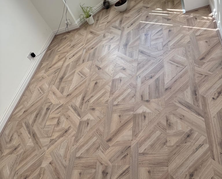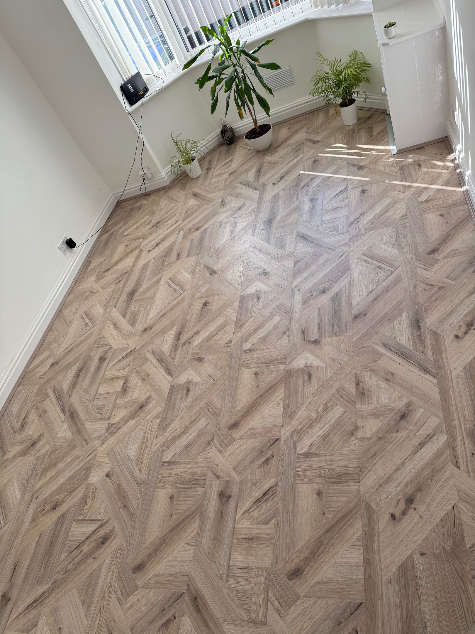 Duraflor transformed our living room with beautiful herringbone flooring—flawless from start to finish.